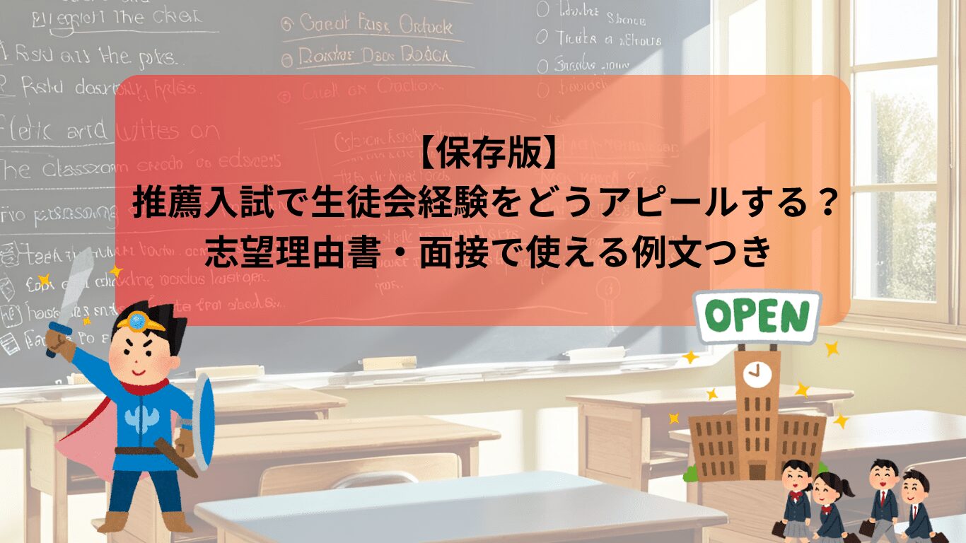今回は、「生徒会経験を推薦入試でどう活かせばいいの?」という悩みに答える記事です。