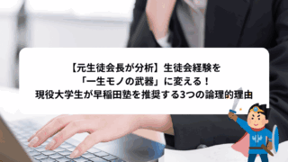 この記事はPRを含みます。「生徒会が忙しくて勉強時間が足りない。このままでは全落ちするかも……」 「活動実績はあるけれど、どう書類に書けば国立大学に刺さるのか分からない」そんな不安を抱えていませんか?こんにちは、学びライフです。私は中学・高...
